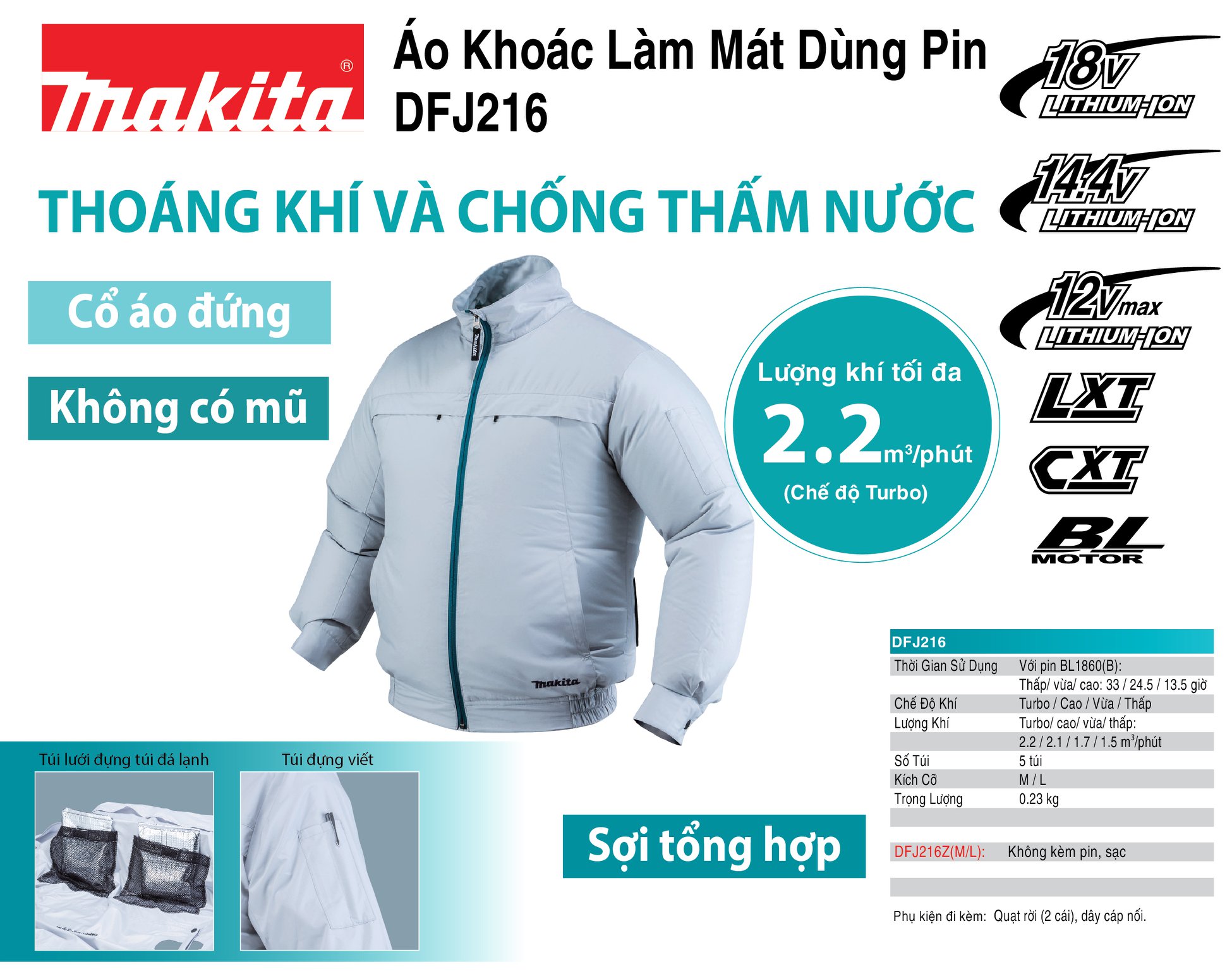 - Thời gian sử dụng: Với pin BL1860(B):Thấp/ vừa/ cao: 33/24.5/13.5 giờ
