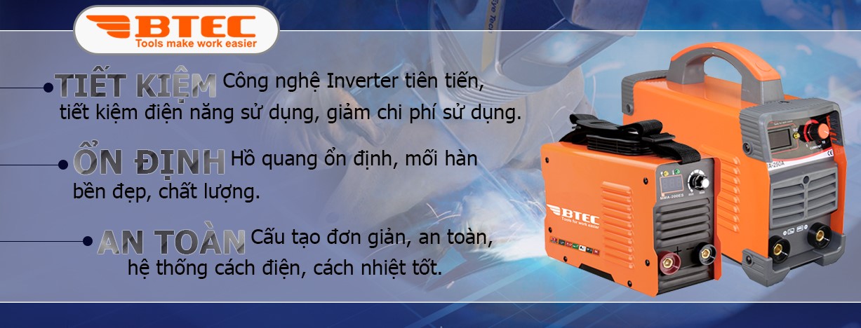 Các dòng sản phẩm từ BTEC được thiết kế theo công nghệ và tiêu chuẩn kỹ thuật của Nhật Bản. Một trong những thương hiệu hàng đầu Châu Á trong lĩnh vực sản xuất dụng cụ cơ khí, thiết bị điện cầm tay như máy mài góc, máy hàn BTEC . Từng sản phẩm được xuất xưởng với sự tỉ mỉ và độ chính xác cao , đảm bảo về chất lượng với sức mạnh vượt trội và độ bền cao.