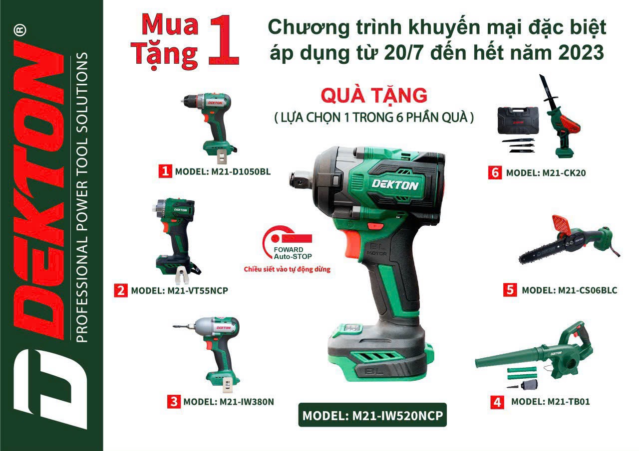 DEKTON M21-IW520NCP -Mua máy bắn bu lông chất lượng cao, nhận ngay 1 trong 6 phần quà hấp dẫn!