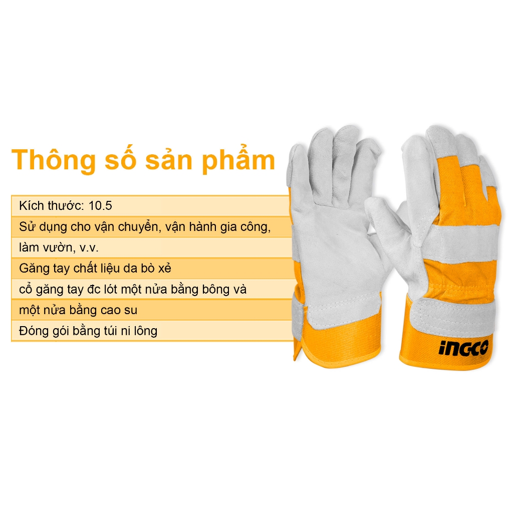 Thông tin chi tiết về Găng tay da bò chẻ Ingco HGVC01