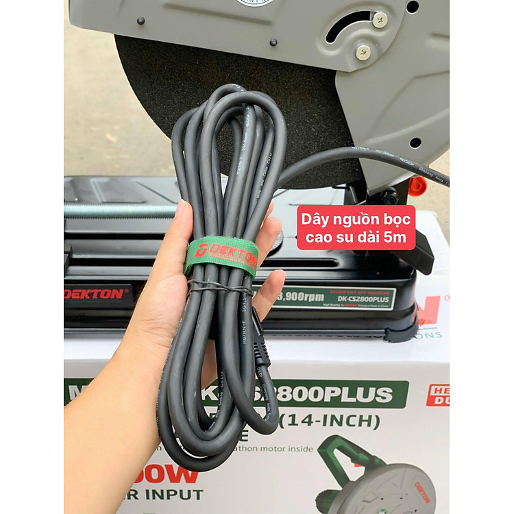 Máy cắt sắt chuyên dụng DK-CS2800PLUS là dòng sản phẩm mạnh mẽ hàng đầu của Dekton với tông màu xanh đặc trưng. Sản phẩm được thiết kế để chịu tải cực cao nhờ motor công suất 2800W với 100% dây đồng nguyên chất. Cả Rotor và Stato đều được đan lưới, đổ keo chống bụi và chống ẩm tỉ mỉ, giúp máy vận hành ổn định trong những môi trường làm việc khắc nghiệt nhất. Đặc biệt, máy sử dụng bạc đạn NSK siêu bền cùng lốc motor bằng nhôm đúc dày, mang lại sự chắc chắn và tuổi thọ vượt trội. Với dây nguồn dài 5m, người dùng có thể linh hoạt thao tác trong không gian rộng mà không gặp bất kỳ trở ngại nào. Đây là giải pháp tối ưu cho các xưởng cơ khí công nghiệp và các công trình xây dựng lớn.