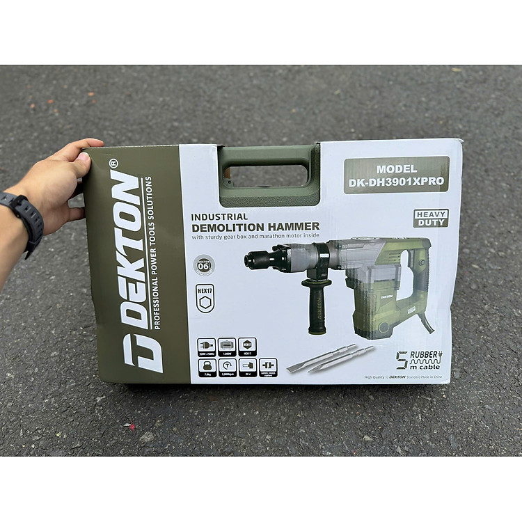 Máy đục bê tông DK-DH3901XPRO là dòng máy đục 17mm cao cấp nhất trong hệ sinh thái XPRO của Dekton. Máy được trang bị tính năng "LY HỢP CƠ" (ngắt lực khi kẹt mũi) – một cải tiến cực kỳ quan trọng giúp bảo vệ động cơ khỏi tình trạng cháy chập và đảm bảo an toàn tuyệt đối cho cổ tay người thợ khi gặp sự cố kẹt mũi đục. Với công suất mạnh mẽ lên tới 1600W và lực đập ấn tượng 22J, máy có khả năng công phá cực mạnh trên mọi bề mặt bê tông mác cao. Thiết kế màu xanh Olive chuyên nghiệp, thân máy đầm chắc cùng hệ thống cơ khí chịu tải nặng giúp DK-DH3901XPRO trở thành sự lựa chọn hàng đầu cho các công trình phá dỡ chuyên nghiệp. Sản phẩm đi kèm hộp nhựa BMC bền bỉ và 2 mũi đục sắc bén.