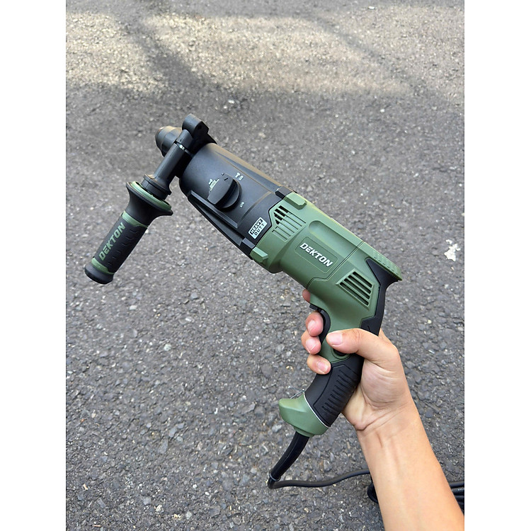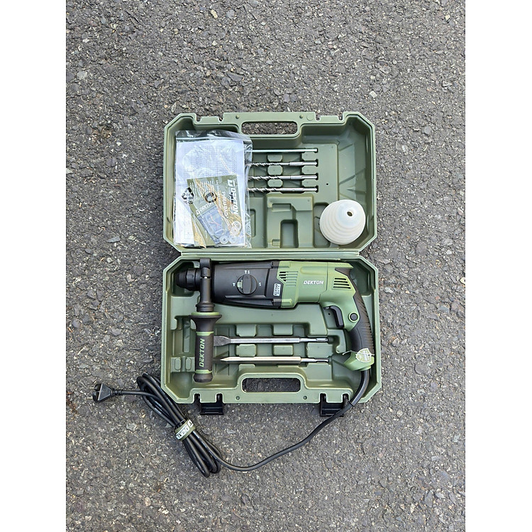 Máy khoan đục bê tông DK-RH2803XPLUS là dòng máy chuyên dụng hạng nặng với lực đập cực mạnh lên đến 4.8J, vượt trội hoàn toàn so với các dòng máy khoan búa thông thường. Thiết kế tập trung vào 2 chức năng chính là khoan búa và đục, giúp tối ưu hóa sức mạnh công suất để chinh phục những lớp bê tông dày và cứng nhất. Máy sử dụng hệ thống đầu gài SDS Plus tiêu chuẩn, cho phép thay đổi phụ kiện nhanh chóng và chắc chắn. Sản phẩm đi kèm bộ phụ kiện đầy đủ gồm 3 mũi khoan và 2 mũi đục, tất cả được đựng trong hộp nhựa BMC cao cấp, chịu va đập tốt, thuận tiện cho việc di chuyển và bảo quản tại công trường. Với màu xanh Olive đặc trưng, đây là thiết bị không thể thiếu cho các đội thợ xây dựng, cầu đường chuyên nghiệp.