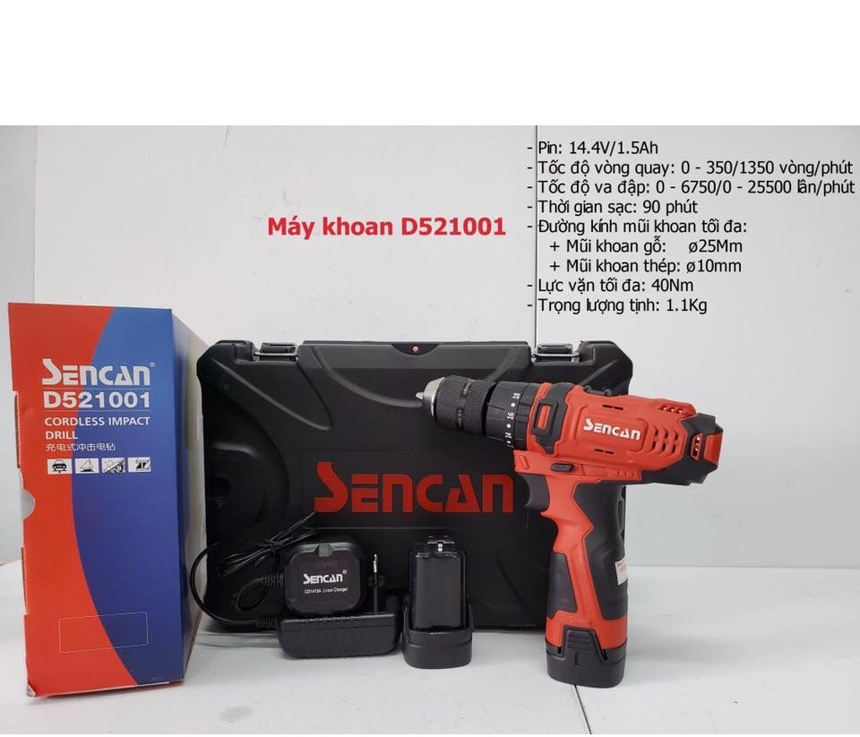 - Máy khoan búa vặn vít dùng pin 14.4V SENCAN D521001