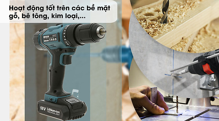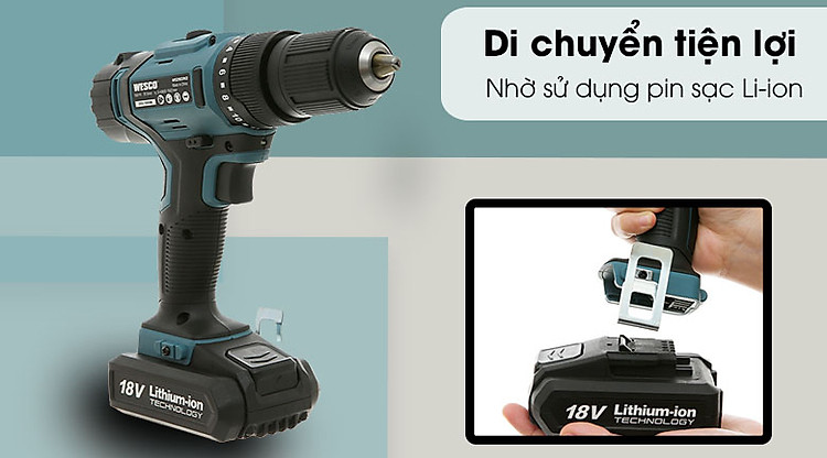 Với chức năng khoan linh hoạt trên các vật liệu, máy khoan pin Wesco sẽ đảm bảo đáp ứng được nhu cầu sử dụng trong gia đình cũng như công việc của thợ điện, thợ lắp ráp,