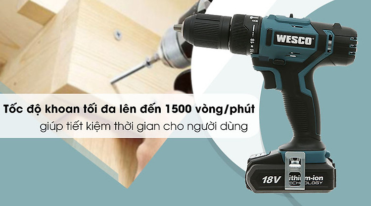 Mặc dù có kiểu dáng nhỏ gọn nhưng máy khoan Wesco được trang bị tốc độ không tải lên đến 1500 vòng/phút tạo ra lực khoan mạnh mẽ giúp tiết kiệm thời gian cho người dùng.