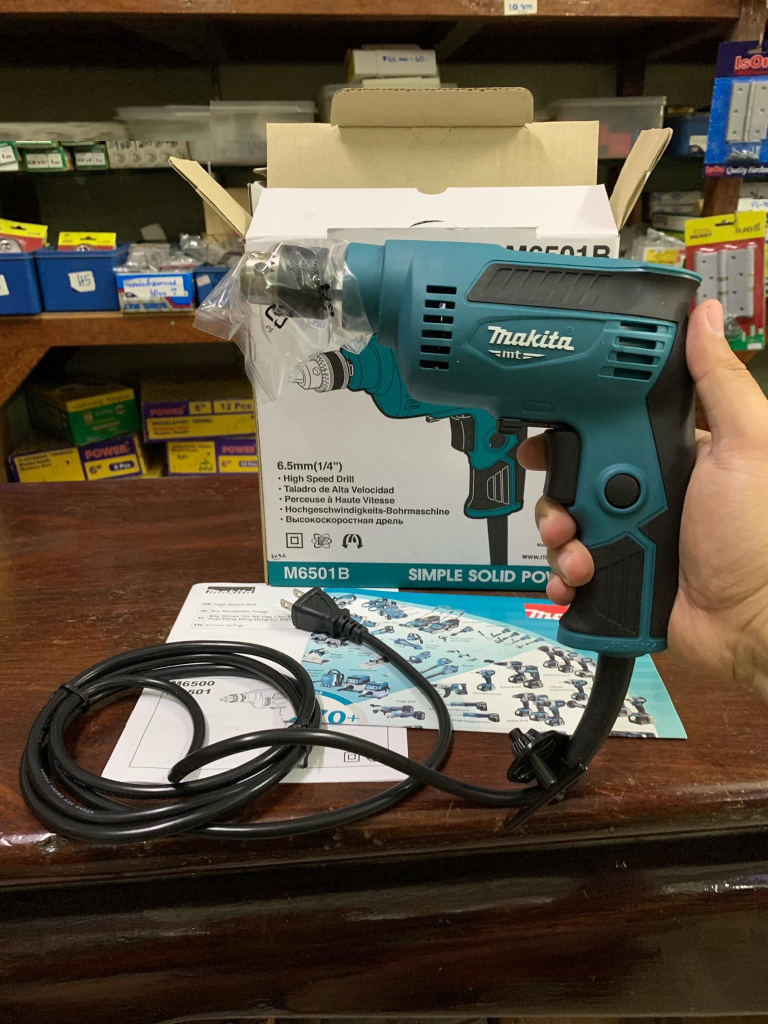 - Đường kính khoan thép: 6,5mm