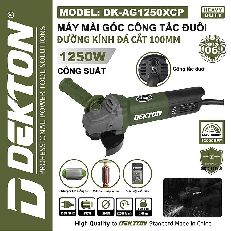 MÁY MÀI GÓC 100MM 1250W CÔNG SUẤT LỚN DK-AG1250XCP DEKTON - HÀNG CHÍNH HÃNG