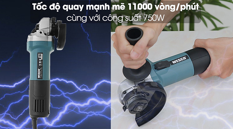 Máy mài Wesco hoạt động mạnh mẽ, có thể liên tục để đáp ứng nhu cầu sử dụng nhờ công suất 750W cùng với tốc độ không tải tối đa lên 11000 vòng/phút, giúp công việc mài bóng được chuẩn xác, tiết kiệm thời gian.