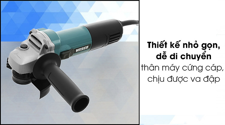 Máy mài góc Wesco Ws4740 750W được làm từ chất liệu nhựa tổng hợp và nhôm cao cấp nên có độ cứng cáp nhất định và khả năng chịu va đập tốt. Ngoài ra, kích thước máy nhỏ gọn: dài 11 cm, ngang 28 cm và dày 22 cm cùng với khối lượng 2.2 kg, giúp cho người dùng dễ di chuyển ở những khu vực hẹp trên bề mặt vật liệu.