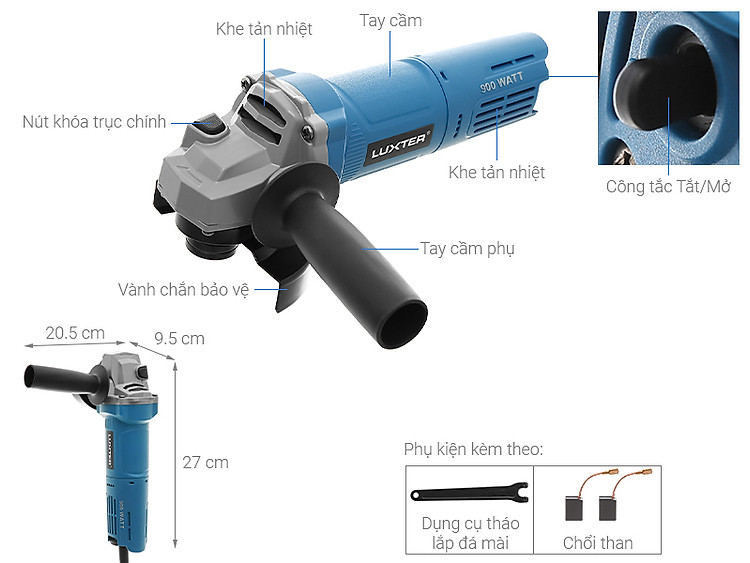 Máy mài Luxter sở hữu công suất làm việc lên đến 900W cùng tốc độ không tải tối đa tến 11000 vòng/phút, đáp ứng khả năng làm việc nhanh chóng và chính xác và đảm bảo hiệu suất trong quá trình sử dụng.