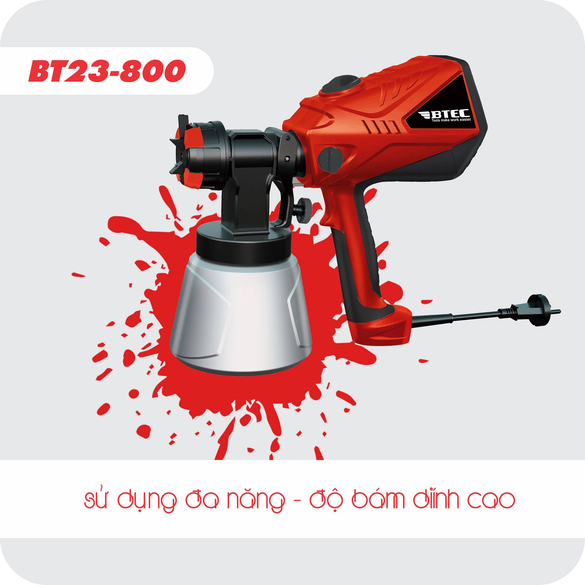 Máy phun sơn BTEC BT23-800 thích hợp phun sơn trên các chất liệu tường, gỗ, nhựa.... nên sản phẩm không chỉ được các gia đình mua về sử dụng mà còn được các thợ chuyên làm cửa, gỗ mua về để dùng trong thi công xây dựng.