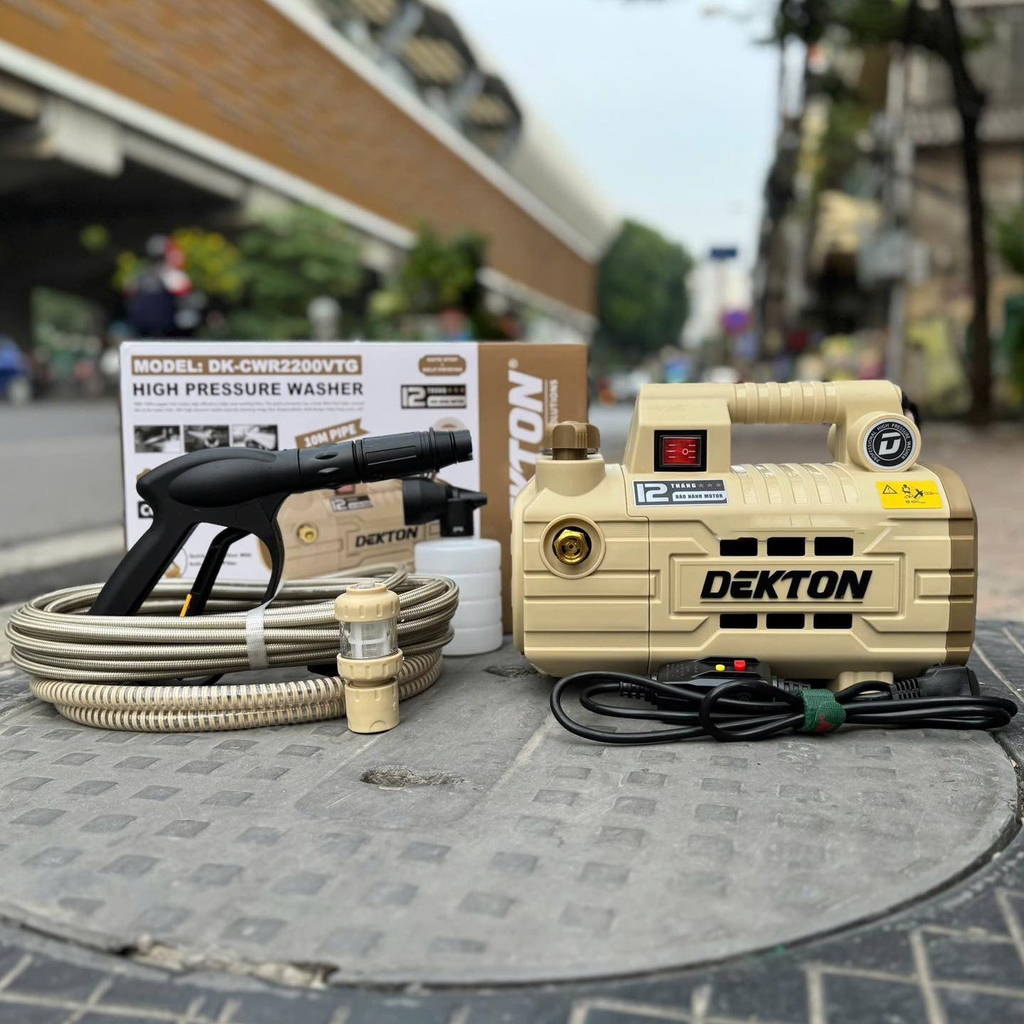 Điểm sáng của dòng máy này là khả năng tùy chỉnh áp suất linh hoạt thông qua núm vặn, kết hợp với đồng hồ báo áp giúp bạn kiểm soát lực nước chính xác cho từng bề mặt cần vệ sinh. Để đảm bảo sự bền bỉ, máy sử dụng motor cảm ứng từ lõi đồng 100%. Về tính an toàn, Dekton đã trang bị dây nguồn có tích hợp công tắc chống giật, bảo vệ người dùng tối đa trong điều kiện làm việc với nước. Với bộ phụ kiện súng lõi kim loại chắc chắn và dây xịt 10m, công việc dọn dẹp của bạn sẽ trở nên nhẹ nhàng và chuyên nghiệp hơn bao giờ hết.
