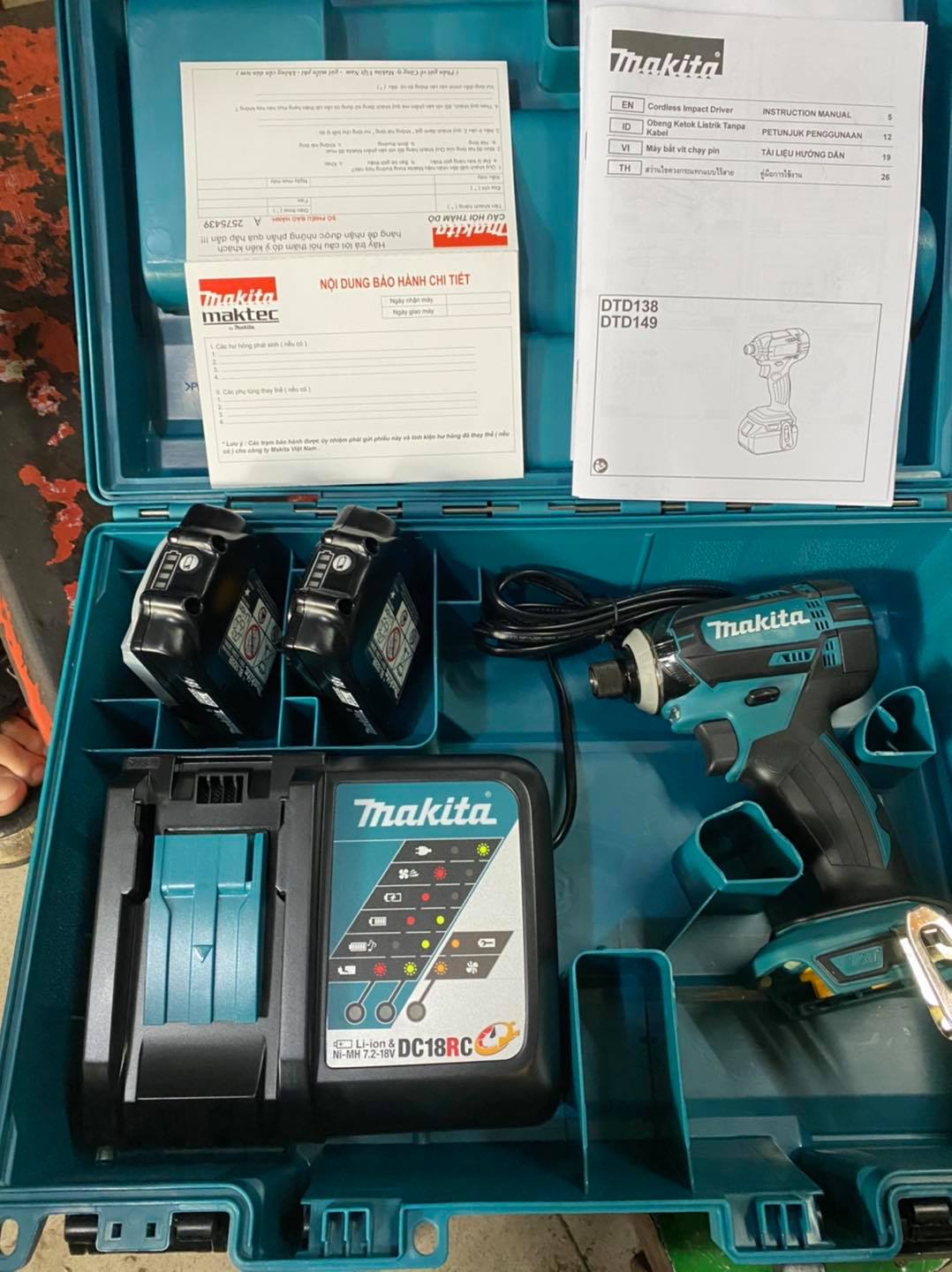 - Sản phẩm bao gồm: Móc treo, sạc nhanh, 2 pin 18V-2Ah