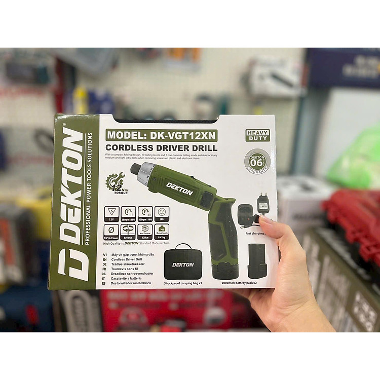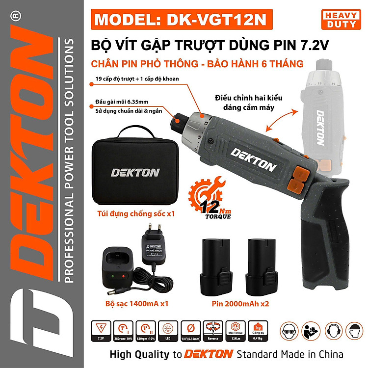 MÁY VÍT GẬP PIN 7.2V CHÂN PIN PHỔ THÔNG (12NM - 19 CẤP TRƯỢT) DK-VGT12N DEKTON - HÀNG CHÍNH HÃNG