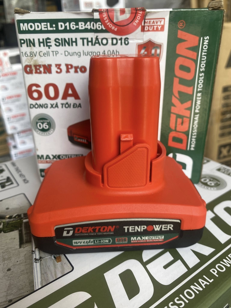 Pin sạc Dekton D16-B4060PRO là dòng pin dung lượng cực đại thuộc hệ sinh thái 16.8V, được thiết kế để đáp ứng nhu cầu làm việc cường độ cao của anh em thợ chuyên nghiệp. Với dung lượng thực tế lên đến 4000mAh (4.0Ah), viên pin này cung cấp thời gian vận hành dài gấp đôi so với các dòng pin thông thường, giúp máy hoạt động bền bỉ suốt cả ngày làm việc mà không cần sạc lại nhiều lần.