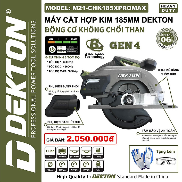 Máy cắt hợp kim dùng pin Dekton M21-CHK185XPROMAX là phiên bản cao cấp nhất trong dòng X-Series, được thiết kế chuyên biệt để chinh phục các loại kim loại và vật liệu cứng tại công trường. Với tông màu Olive (Xanh Oliu) mạnh mẽ, máy sở hữu động cơ không chổi than (Brushless) hiệu suất cao, mang lại sức mạnh cắt vượt trội tương đương với các dòng máy dùng điện nhưng linh hoạt hơn gấp nhiều lần.