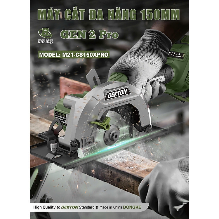 Máy cưa đĩa dùng pin Dekton M21-CS150XPRO là phiên bản nâng cấp thuộc dòng X-Series, được thiết kế chuyên dụng cho các công việc cắt đa năng, đặc biệt là cắt kim loại và hợp kim. Máy nổi bật với tông màu Olive (Xanh Oliu) cá tính, mạnh mẽ, mang lại phong cách chuyên nghiệp cho người sử dụng. Trái tim của máy là động cơ không chổi than (Brushless) hiệu suất cao, giúp máy vận hành ổn định, không lo cháy chổi than và cực kỳ tiết kiệm năng lượng.
