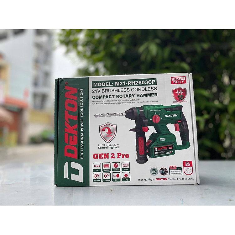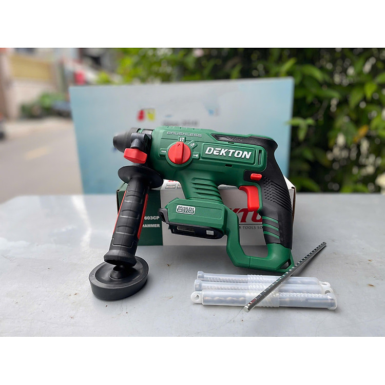 Thân máy khoan bê tông pin Dekton M21-RH2603CP là dòng máy khoan động lực 3 chức năng chuyên dụng bao gồm khoan thường khoan đục và đục tỉa mang lại sự linh hoạt tối đa cho thợ xây dựng và điện nước. Với lực đập mạnh mẽ 2.6J và tốc độ không tải đạt 1350 vòng mỗi phút máy dễ dàng chinh phục các bề mặt bê tông cứng và tường gạch. Sản phẩm được trang bị công nghệ Anti Kickback giúp tự động ngắt máy khi gặp sự cố kẹt mũi đảm bảo an toàn tuyệt đối cho cổ tay người lao động. Với trọng lượng thân máy nhẹ chỉ 2kg thiết kế cân bằng tốt giúp người dùng làm việc liên tục trên cao mà không gây mỏi mệt. Sản phẩm đi kèm sẵn 3 mũi khoan bê tông chất lượng cao và có hai tùy chọn màu sắc Xanh và Xám hiện đại.