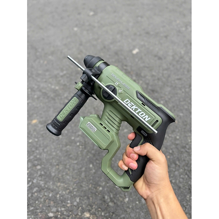 Thân máy khoan bê tông pin Dekton M21-RH2603XCP là dòng máy khoan động lực 3 chức năng chuyên dụng bao gồm khoan khoan đục và đục tỉa mang lại sự linh hoạt tối đa cho các công việc thi công xây dựng. Với lực đập 2.6J và tốc độ không tải tối đa đạt 1350 vòng mỗi phút máy đảm bảo hiệu suất làm việc nhanh chóng trên các bề mặt bê tông và tường gạch. Sản phẩm được trang bị công nghệ an toàn Anti Kickback giúp tự động ngắt máy khi xảy ra hiện tượng kẹt mũi khoan bảo vệ cổ tay người sử dụng. Máy có trọng lượng siêu nhẹ chỉ 2kg giúp thao tác dễ dàng ở những vị trí trên cao hoặc trong không gian hẹp mà không gây nhanh mỏi. Phiên bản màu Xanh Oliu mạnh mẽ đi kèm sẵn 3 mũi khoan bê tông chất lượng giúp người dùng có thể bắt đầu công việc ngay lập tức.
