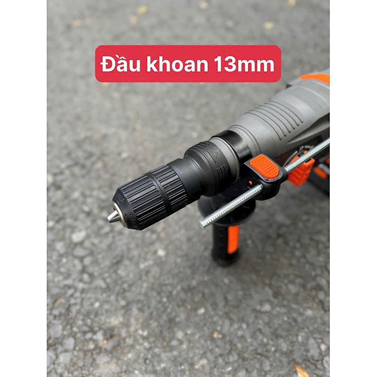 - Phụ kiện đi kèm: 1 đầu khoan 13mm kết nối nhanh, 2 mũi đục, 3 mũi khoan bê tông, Hộp nhựa