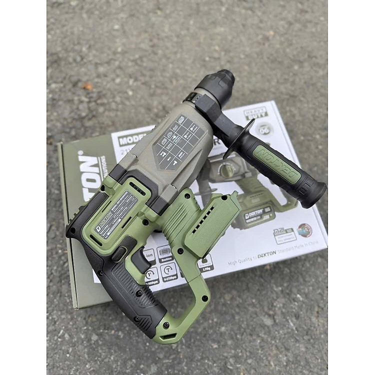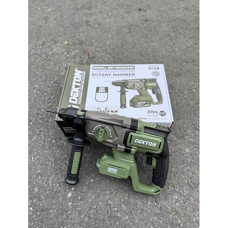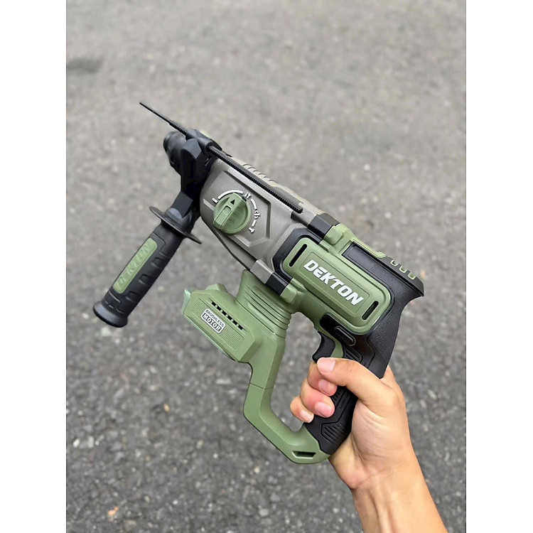 Thân máy khoan bê tông pin Dekton M21-RH2603XC được trang bị động cơ không chổi than Brushless bền bỉ giúp máy vận hành mạnh mẽ và tiết kiệm năng lượng tối ưu. Sản phẩm sở hữu 3 chức năng làm việc chuyên dụng bao gồm khoan khoan đục và đục tỉa cho phép xử lý linh hoạt nhiều loại bề mặt vật liệu khác nhau. Với lực đập ấn tượng lên đến 3.2J và tốc độ không tải 1050 vòng mỗi phút máy đảm hiệu suất phá dỡ và khoan thủng bê tông nhanh chóng. Thiết kế sử dụng đầu gài mũi SDS Plus tiêu chuẩn giúp thao tác tháo lắp mũi khoan diễn ra cực kỳ đơn giản và an toàn. Trọng lượng thân máy nhẹ chỉ 2kg kết hợp cùng tông màu Olive hầm hố mang lại sự tiện dụng tối đa khi thi công trong thời gian dài hoặc tại các vị trí khó tiếp cận.