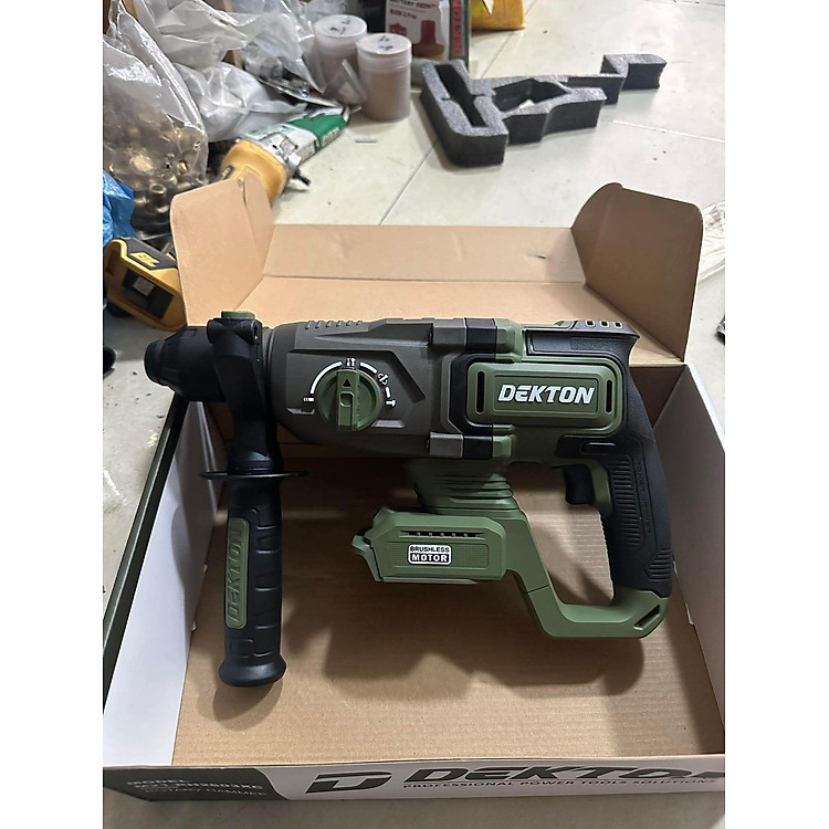 Thân máy khoan đục bê tông pin Dekton M21-RH2803XPRO là dòng máy khoan động lực cao cấp với khả năng liên kết đồng bộ với máy hút bụi, giúp tối ưu hóa vệ sinh và bảo vệ sức khỏe người dùng tại công trình. Máy sở hữu động cơ không chổi than (Brushless) bền bỉ, mang lại lực đập mạnh mẽ 3.2J cùng hệ thống điều chỉnh 6 cấp tốc độ linh hoạt. Sản phẩm được trang bị đầy đủ các công nghệ an toàn và hiện đại nhất bao gồm: hệ thống giảm rung (AVT), tính năng chống bẻ cổ tay Anti-Kickback, chế độ tạo xung hỗ trợ khoan vật liệu cứng và tính năng ghi nhớ độ sâu khoan thông minh. Với thiết kế màu Olive chuyên nghiệp và trọng lượng tổng thể 3.8kg, máy đáp ứng hoàn hảo mọi nhu cầu từ khoan thường, khoan đục đến đục phá bê tông chuyên sâu.